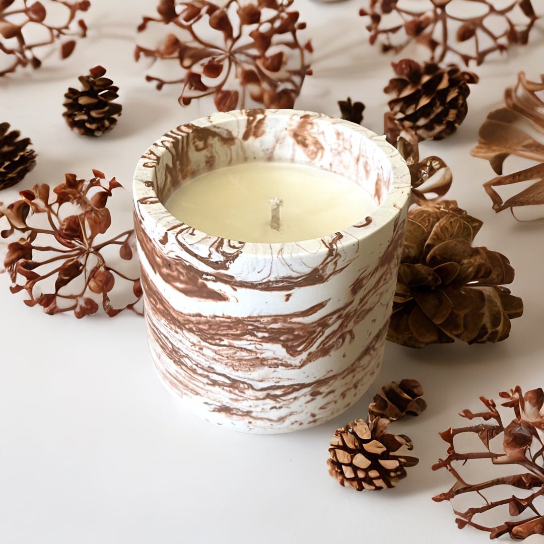 Chaque création est entièrement façonnée à la main, du pot en Jesmonite (une éco-résine minérale sans solvants ni composés volatils toxiques, reconnue pour sa solidité, sa légèreté et son empreinte environnementale très faible) coulé dans notre atelier avec une cire 100% végétale et sans CMR ( substances Cancérogènes, Mutagènes ou Reprotoxiques) sans phtalates (composés chimiques parfois utilisés pour fixer les parfums dans les bougies mais pouvant libérer des substances nocives dans l'air intérieurs) et sans OGM, soigneusement fondue, dosée et parfumée par nos soins avec des parfums de Grasse, capitale mondiale du parfum, réputée pour la pureté et la finesse de ses essences.